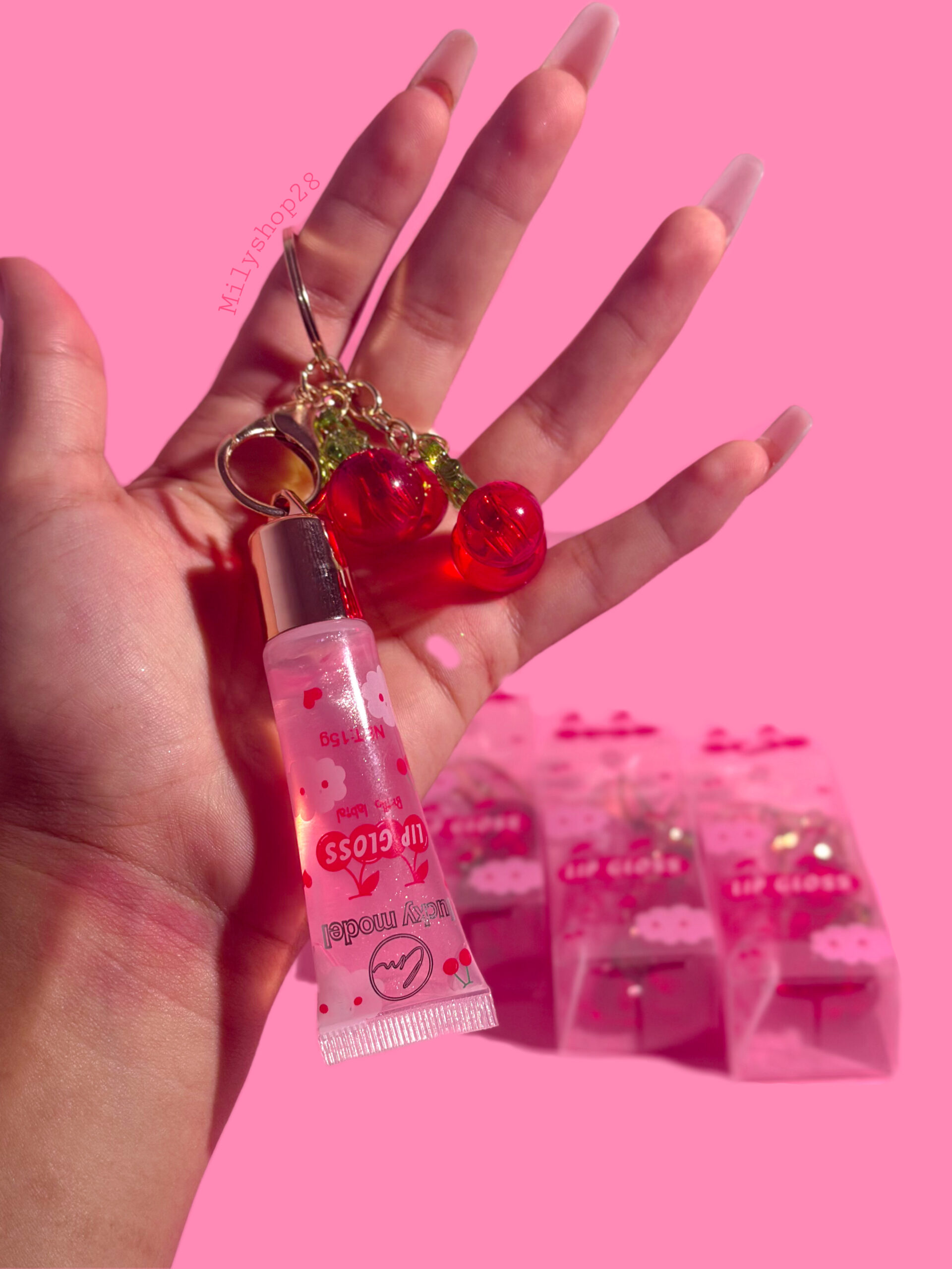 🍒 Lip Gloss con llavero de cereza 🍒 Brillo irresistible ✨ hidratación ligera 💋 Llévalo contigo a todos lados, cute y práctico 💖 Perfecto para retoques rápidos 💄 ¡Un must en tu bolso! 🍒✨